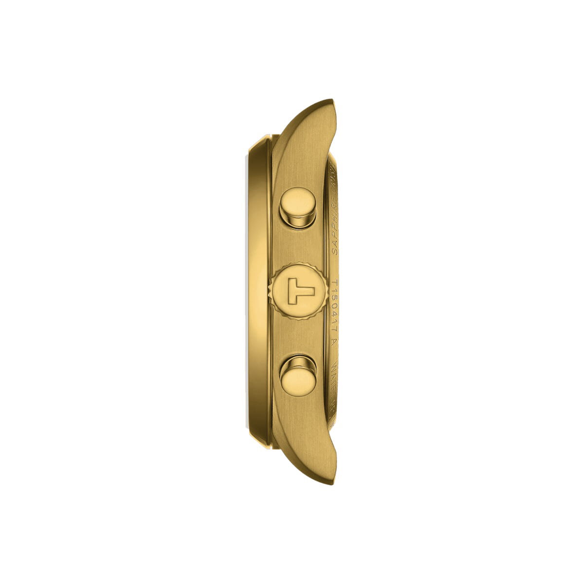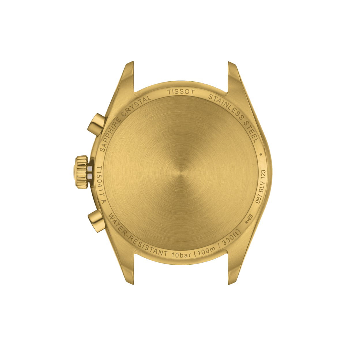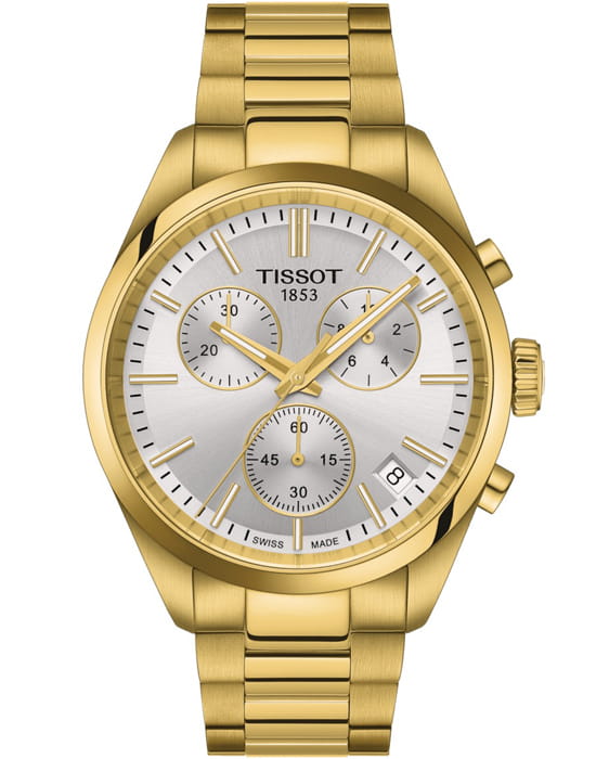 Мужские швейцарские часы-хронографХронографФункция позволяет измерять отрезки времени с особой точностью: часы, минуты, секунды. Верным признаком хронографа является наличие на циферблате 3 дополнительных окошек-счётчиков. Tissot PR 100 Chronograph T150.417.33.031.00, кварцевый механизм с высокой точностью. Сапфировое стеклоСапфировое стеклоПрочный и надёжный материал из кристалла сапфира синтетического происхождения, характеризующийся особой твёрдостью и устойчивостью к царапинам и повреждениям. устойчивое к появлению царапин, обладающее высокой прозрачностью. Корпус часов изготовлен из нержавеющей стали с PVD-покрытиемPVDУльтратонкое покрытие наносится в технике вакуумного напыления, сочетает в себе нитрид титана особой прочности со слоем золота или оксида хрома. Несёт в себе декоративную или защитную функцию.. Стрелки и метки с люминесцентным покрытиемЛюминесцентное покрытиеПозволяет считывать показания времени в темноте. Производители наносят на стрелки, часовые индексы, безель или поверхность циферблата светонакопительный состав, дающий холодное свечение.. Класс водозащиты: 100 метров, позволит плавать, нырять и заниматься другими водными видами спорта. Стальной браслет с PVD-покрытиемPVDУльтратонкое покрытие наносится в технике вакуумного напыления, сочетает в себе нитрид титана особой прочности со слоем золота или оксида хрома. Несёт в себе декоративную или защитную функцию. на застёжке-бабочке с кнопкамиЗастёжка "бабочка"Такой вид застёжки дополняется предохранителями, помогающими избежать случайного раскрытия браслета. Обладают изящным исполнением. . ХронографХронографФункция позволяет измерять отрезки времени с особой точностью: часы, минуты, секунды. Верным признаком хронографа является наличие на циферблате 3 дополнительных окошек-счётчиков. с функцией фиксации нескольких результатов.