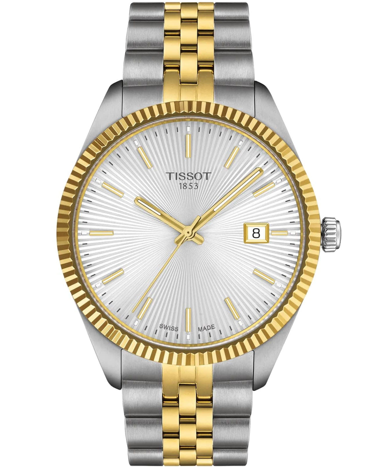 Часы Tissot Ballade 40 мм T156.410.22.031.00 сочетают классический дизайн с современными технологиями. Корпус диаметром 40 мм выполнен из нержавеющей стали 316L с безелем, покрытым PVDPVDУльтратонкое покрытие наносится в технике вакуумного напыления, сочетает в себе нитрид титана особой прочности со слоем золота или оксида хрома. Несёт в себе декоративную или защитную функцию.-покрытием жёлтого золота, придающим часам элегантный вид. Серебристый циферблат защищён выпуклым сапфировым стекломСапфировое стеклоПрочный и надёжный материал из кристалла сапфира синтетического происхождения, характеризующийся особой твёрдостью и устойчивостью к царапинам и повреждениям. с антибликовым покрытием, обеспечивающим стойкость к царапинам и отличную читаемость.