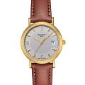 Женские швейцарские часы из коллекции T-Gold помогут в создании роскошного и респектабельного образа - они сделаны из 18-каратного золото18-каратное золотоОбозначение по каратной системе пробирования, оно показывает, сколько драгоценного металла содержится в изделии. 18 карат - в составе 75% чистого золота, соответствует 750 пробе.