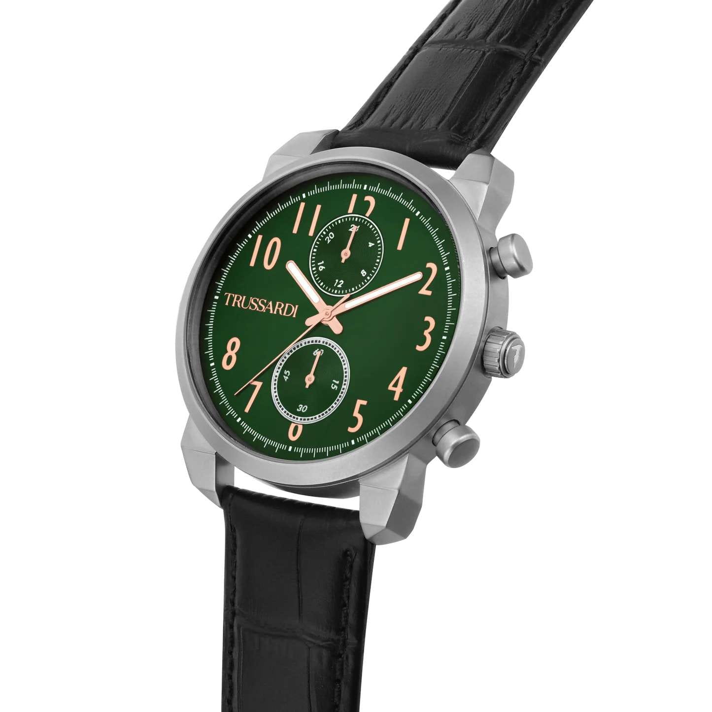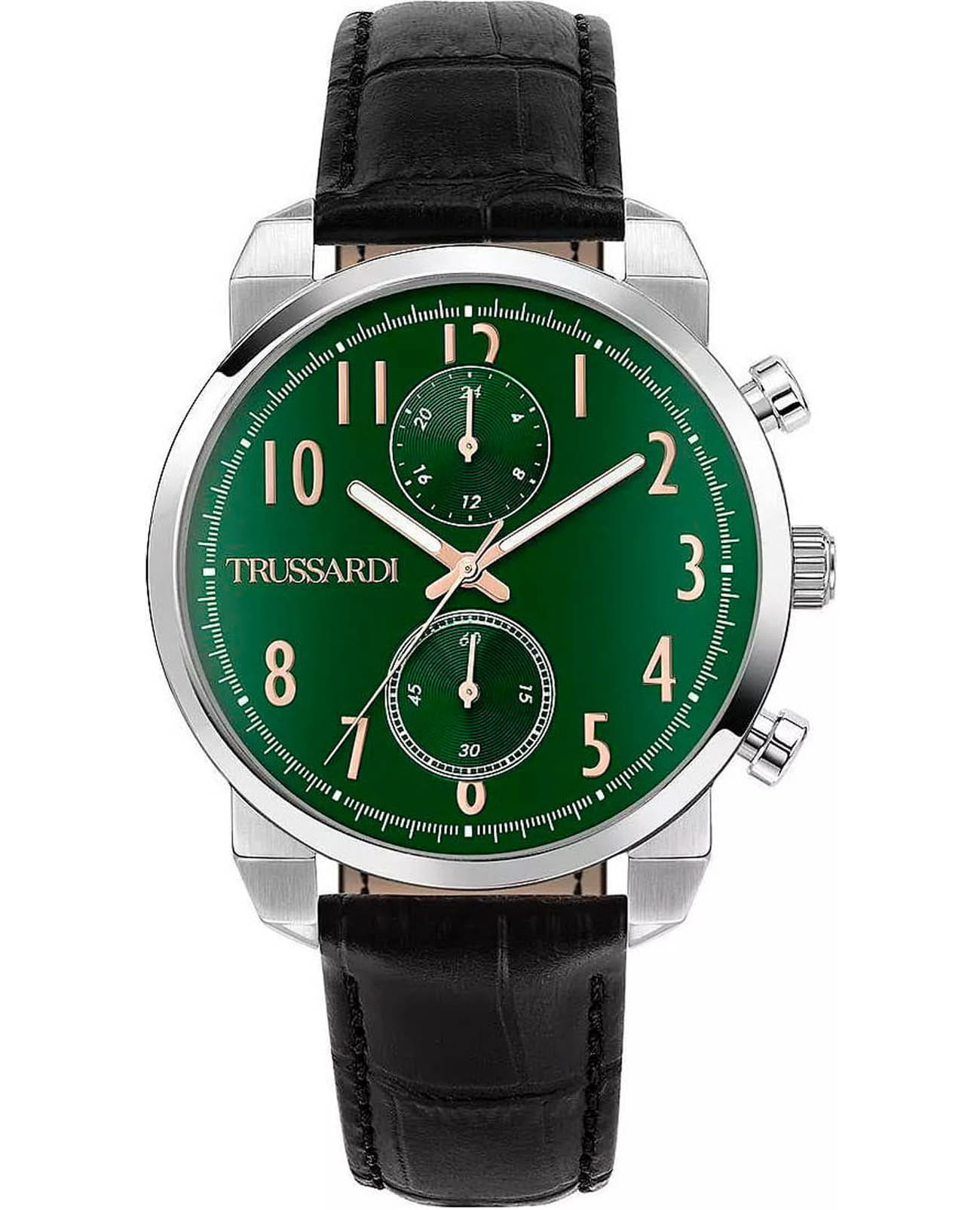 Итальянские мужские часы Trussardi T-City R2451154001 - это стильный мужской аксессуар, который сочетает элегантный дизайн и практичность. Корпус выполнен из нержавеющей стали, что обеспечивает долговечность и утончённый внешний вид. Надежное минеральное стеклоМинеральное стеклоМинеральное стекло представляет собой искусственно выращенный минерал кварца. Такое стекло отличается особой устойчивостью к повреждениям и царапинам. Уступает по некоторым качествам сапфировому стеклу. защищает циферблат от царапин и обеспечивает долговечность. Модель оснащена кварцевым механизмом, обеспечивающим высокую точность хода. Кожаный ремень со стандартной застежкой обеспечивает комфортное ношение. Водозащита 50 метров позволит защитить корпус от случайных брызг или капель дождя. Вынесенный циферблат с 24-х часовым указателем времени, а также вынесенный циферблат c хронографомХронографФункция позволяет измерять отрезки времени с особой точностью: часы, минуты, секунды. Верным признаком хронографа является наличие на циферблате 3 дополнительных окошек-счётчиков.. Стрелки оснащены люминесцентным покрытиемЛюминесцентное покрытиеПозволяет считывать показания времени в темноте. Производители наносят на стрелки, часовые индексы, безель или поверхность циферблата светонакопительный состав, дающий холодное свечение., обеспечивающим отличную видимость даже при слабом освещении. Эта модель – отличный выбор для тех, кто ищет сочетание стиля, качества и функциональности. Часы станут не только полезным аксессуаром, но и выразительным элементом вашего имиджа.