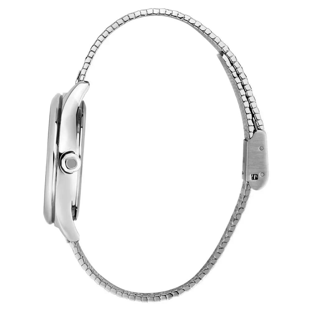 Итальянские женские часы Trussardi T-Vision R2453170505 - это стильный женский аксессуар, который сочетает элегантный дизайн и практичность. Корпус выполнен из нержавеющей стали, что обеспечивает долговечность и утончённый внешний вид. Надежное минеральное стеклоМинеральное стеклоМинеральное стекло представляет собой искусственно выращенный минерал кварца. Такое стекло отличается особой устойчивостью к повреждениям и царапинам. Уступает по некоторым качествам сапфировому стеклу. защищает циферблат от царапин и обеспечивает долговечность. Корпус и циферблат украшены кристаллами. Модель оснащена кварцевым механизмом, обеспечивающим высокую точность хода. Окошко даты в положении 3 часов. Браслет из нержавеющей стали с частичным IP-покрытиемIP-покрытиеМетод ионного напыления. Демонстрирует повышенную устойчивость к истиранию, окислению и химическим веществам. Под воздействием высокого давления и температуры около 1500°C молекулы металла надёжно соединяются с частицами корпуса часов. с раскладным замкомРаскладной замокДанный вариант застежки используется только на часах с металлическим браслетом. Отличительная особенность такого крепления в том, что длина браслета становится универсальной и вы можете самостоятельно отрегулировать нужный вам размер – застежка просто двигается по браслету часов. обеспечивает комфортное ношение. Стрелки и метки оснащены люминесцентным покрытиемЛюминесцентное покрытиеПозволяет считывать показания времени в темноте. Производители наносят на стрелки, часовые индексы, безель или поверхность циферблата светонакопительный состав, дающий холодное свечение., обеспечивающим отличную видимость даже при слабом освещении. Водозащита 50 метров позволит защитить корпус от случайных брызг или капель дождя. Эта модель – отличный выбор для тех, кто ищет сочетание стиля, качества и функциональности. Часы станут не только полезным аксессуаром, но и выразительным элементом вашего имиджа.