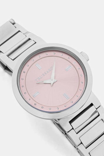 Итальянские женские часы Trussardi T-Bridge R2453171508 - это стильный женский аксессуар, который сочетает элегантный дизайн и практичность. Корпус выполнен из нержавеющей стали, что обеспечивает долговечность и утончённый внешний вид. Надежное минеральное стеклоМинеральное стеклоМинеральное стекло представляет собой искусственно выращенный минерал кварца. Такое стекло отличается особой устойчивостью к повреждениям и царапинам. Уступает по некоторым качествам сапфировому стеклу. защищает циферблат с кристаллами от царапин и обеспечивает долговечность. Модель оснащена кварцевым механизмом, обеспечивающим высокую точность хода. Браслет из нержавеющей стали на раскладной застёжкеРаскладная застёжкаТакой тип застёжки используется только на браслетах из металла. Она никогда не раскрывается полностью, происходит разделение на 2 и более частей. Раскладывающая застёжка снизит вероятность потери часов к минимуму. обеспечивает комфортное ношение. Водозащита 50 метров позволит защитить корпус от случайных брызг или капель дождя. Эта модель – отличный выбор для тех, кто ищет сочетание стиля, качества и функциональности. Часы станут не только полезным аксессуаром, но и выразительным элементом вашего имиджа.