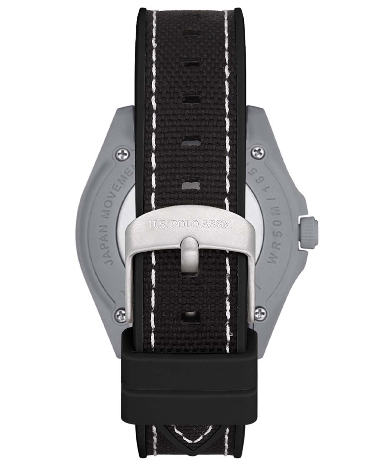 Мужские часы U.S. Polo Assn. Crossing USPA1053-03, кварцевый механизм с высокой точностью. Минеральное стеклоМинеральное стеклоМинеральное стекло представляет собой искусственно выращенный минерал кварца. Такое стекло отличается особой устойчивостью к повреждениям и царапинам. Уступает по некоторым качествам сапфировому стеклу. устойчивое к появлению царапин, обладающее высокой прозрачностью. Корпус часов изготовлен из биокерамикиБиокерамикаБиокерамика — это материал, который на две трети состоит из керамики, на одну треть — из биопластика. Он сочетает в себе лучшие качества обоих материалов и обладает прочностью и шелковистой на ощупь текстурой.. Центральные часовая, минутная и секундная стрелки. Индикация даты и дня недели. 12/24х часовой формат времени. Стрелки и метки с люминесцентным покрытиемЛюминесцентное покрытиеПозволяет считывать показания времени в темноте. Производители наносят на стрелки, часовые индексы, безель или поверхность циферблата светонакопительный состав, дающий холодное свечение.. Класс водозащиты: 50 метров, позволит защитить корпус от случайных брызг или капель дождя. Текстильный ремешок на силиконовой основе. Стандартная застежка.