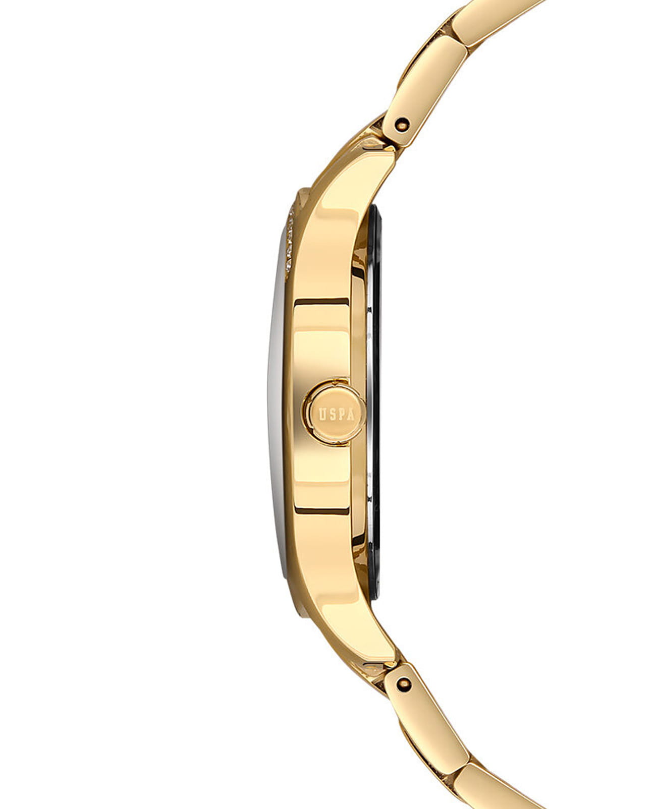 Женские часы U.S. Polo Assn Stile USPA2060-03, кварцевый механизм с высокой точностью. Минеральное стеклоМинеральное стеклоМинеральное стекло представляет собой искусственно выращенный минерал кварца. Такое стекло отличается особой устойчивостью к повреждениям и царапинам. Уступает по некоторым качествам сапфировому стеклу. устойчивое к появлению царапин, обладающее высокой прозрачностью. Корпус изготовлен из нержавеющей стали с IP-покрытиемIP-покрытиеМетод ионного напыления. Демонстрирует повышенную устойчивость к истиранию, окислению и химическим веществам. Под воздействием высокого давления и температуры около 1500°C молекулы металла надёжно соединяются с частицами корпуса часов.. БезельБезельВнешний ободок, закрепляющий стекло. В спортивных часах так называется поворотное кольцо с делениями на циферблате, выполняет роль таймера – замеряет отрезки времени на шкале. Неподвижный безель – элемент декора. Однонаправленно вращающийся безель на дайверских часах позволяет фиксировать моменты погружения и выныривания на поверхность. и циферблат украшены кристаллами. Окошко даты в положении 3 часа. Класс водозащиты: 30 метров, позволит защитить корпус от случайных брызг или капель дождя. Стальной браслет с IP-покрытиемIP-покрытиеМетод ионного напыления. Демонстрирует повышенную устойчивость к истиранию, окислению и химическим веществам. Под воздействием высокого давления и температуры около 1500°C молекулы металла надёжно соединяются с частицами корпуса часов. на раскладной застёжкеРаскладная застёжкаТакой тип застёжки используется только на браслетах из металла. Она никогда не раскрывается полностью, происходит разделение на 2 и более частей. Раскладывающая застёжка снизит вероятность потери часов к минимуму..