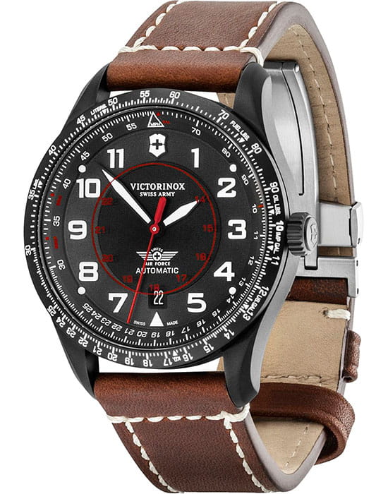Мужские механические швейцарские часы с сапфировым стеклом Victorinox AirBoss 241886, механический механизм (автоматический калибр) с высокой точностью. Сапфировое стекло устойчивое к появлению царапин, обладающее высокой прозрачностью. Класс водозащиты: 100 метров, позволит плавать, нырять и заниматься другими водными видами спорта. Корпус часов изготовлен из стали, цвета.