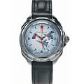 В механизме 17 камней. Запас хода 36 часов. Противоударное устройство оси баланса. Вращающийся безель. Завинчивающаяся заводная головка с защитой.