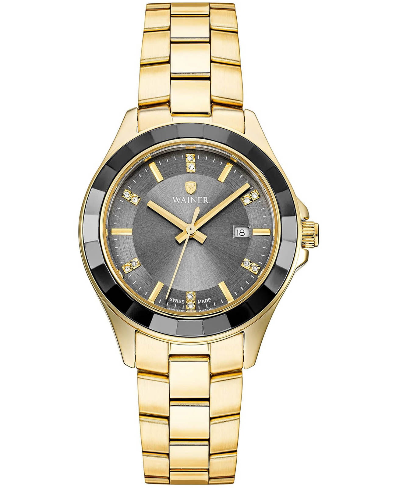 Стальной корпус круглой формы выполнен из нержавеющей стали марки 316L с PVD-покрытиемPVDУльтратонкое покрытие наносится в технике вакуумного напыления, сочетает в себе нитрид титана особой прочности со слоем золота или оксида хрома. Несёт в себе декоративную или защитную функцию., что придает часам премиальный внешний вид и делает их устойчивыми к механическим повреждениям. Циферблат украшен фирменным логотипом Wainer и накладными метками в виде штрихов, чередующимися с блестящими цирконами, добавляющими особую роскошь и шарм.