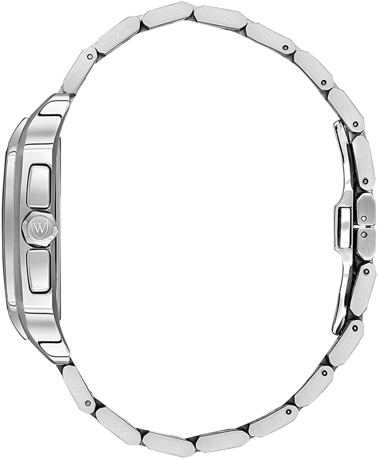 Мужские кварцевые часы Wainer WA.18090-D — это стильный аксессуар, сочетающий в себе швейцарское качество и изысканный дизайн. Модель выполнена в квадратной форме из стали 316L с декоративными винтами, что придаёт ей прочность и устойчивость к царапинам. Циферблат дополнен штриховыми метками и римскими цифрами, а секундная стрелка на конце декорирована буквой W, подчёркивая внимание к деталям. Защиту механизма обеспечивает сапфировое стеклоСапфировое стеклоПрочный и надёжный материал из кристалла сапфира синтетического происхождения, характеризующийся особой твёрдостью и устойчивостью к царапинам и повреждениям., устойчивое к повреждениям. Окошко даты расположено в положении 4 часов, а гранёная заводная головка с защитой оснащена фирменным логотипом, добавляя модели индивидуальности. Браслет из стали 316L шириной 22 мм оснащён Раскладная застёжкаРаскладная застёжкаТакой тип застёжки используется только на браслетах из металла. Она никогда не раскрывается полностью, происходит разделение на 2 и более частей. Раскладывающая застёжка снизит вероятность потери часов к минимуму., обеспечивающей комфорт и надёжную фиксацию на запястье. Водонепроницаемость позволяет использовать модель при мытье рук или под лёгким дождём. Стрелки с люминесцентным покрытиемЛюминесцентное покрытиеПозволяет считывать показания времени в темноте. Производители наносят на стрелки, часовые индексы, безель или поверхность циферблата светонакопительный состав, дающий холодное свечение. обеспечивают отличную читаемость даже в условиях слабого освещения. Механизм калибра Ronda 5030.D гарантирует точность хода и надёжность. Эти часы станут универсальным аксессуаром для тех, кто ценит сочетание стиля, функциональности и швейцарского мастерства — идеальный выбор для повседневной носки и торжественных случаев.