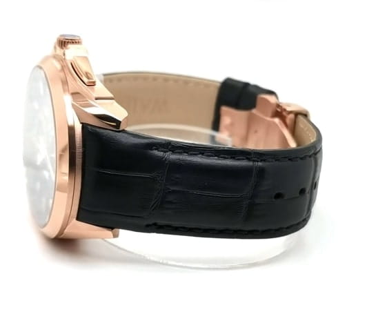 Модель Wainer WA.19400-C сочетает элегантность, швейцарское качество и функциональность. Корпус диаметром 43 мм выполнен из нержавеющей стали 316L с PVD-покрытиемPVDУльтратонкое покрытие наносится в технике вакуумного напыления, сочетает в себе нитрид титана особой прочности со слоем золота или оксида хрома. Несёт в себе декоративную или защитную функцию., обеспечивающей прочность. Циферблат оформлен в классическом стиле и оснащен хронографомХронографФункция позволяет измерять отрезки времени с особой точностью: часы, минуты, секунды. Верным признаком хронографа является наличие на циферблате 3 дополнительных окошек-счётчиков. для точного измерения времени, а сапфировое стеклоСапфировое стеклоПрочный и надёжный материал из кристалла сапфира синтетического происхождения, характеризующийся особой твёрдостью и устойчивостью к царапинам и повреждениям. защищает дисплей от царапин и механических повреждений. Часы работают на надежном кварцевом механизме, обеспечивающем стабильную точность. Натуральный кожаный ремешок гарантирует комфортное ношение и элегантный внешний вид. Водонепроницаемость до 50 метров защищает часы от случайных брызг. Wainer WA.19400-C — это стильный аксессуар для мужчин, ценящих швейцарскую точность, современный стиль и функциональность.