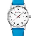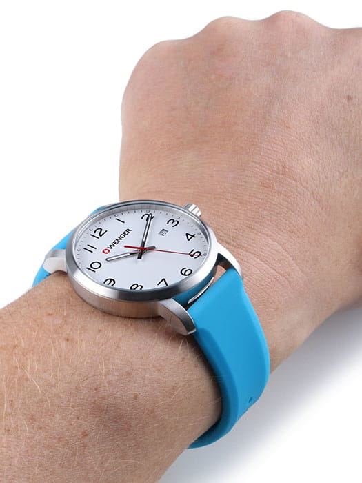 Мужские швейцарские часы на силиконовом ремешке Wenger 01.1641.109, кварцевый механизм с высокой точностью. Класс водозащиты: 100 метров, позволит плавать, нырять и заниматься другими водными видами спорта. Корпус часов изготовлен из стали, серебристого цвета.