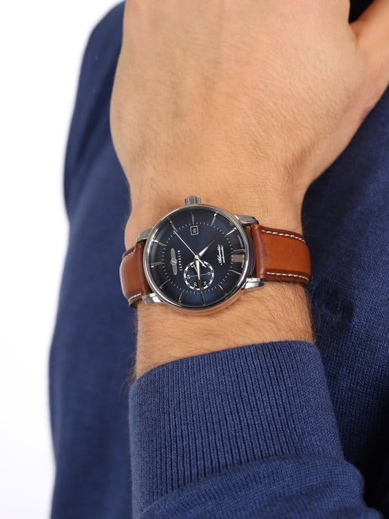 Часы Zeppelin 8466-3 — это квинтэссенция элегантности и точности. Изготовленная из полированной нержавеющей стали, эта модель отличается синим циферблатом, который идеально сочетается с коричневым кожаным ремешком. Автоматический механизм обеспечивает надежность и долговечность, также есть дополнительные функции, такие как индикация дня месяца и недели. Люминесцентное покрытиеЛюминесцентное покрытиеПозволяет считывать показания времени в темноте. Производители наносят на стрелки, часовые индексы, безель или поверхность циферблата светонакопительный состав, дающий холодное свечение. на стрелках и указателях обеспечивает разборчивость в темноте, а закаленное минеральное стеклоМинеральное стеклоМинеральное стекло представляет собой искусственно выращенный минерал кварца. Такое стекло отличается особой устойчивостью к повреждениям и царапинам. Уступает по некоторым качествам сапфировому стеклу. защищает от царапин, что делает его идеальным выбором для любого джентльмена. Кроме того, водонепроницаемость часов составляет 50 метров, так что вы можете спокойно принимать в них душ. Эти часы подойдут для повседневного ношения и станут ярким акцентом в вашем наряде.